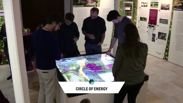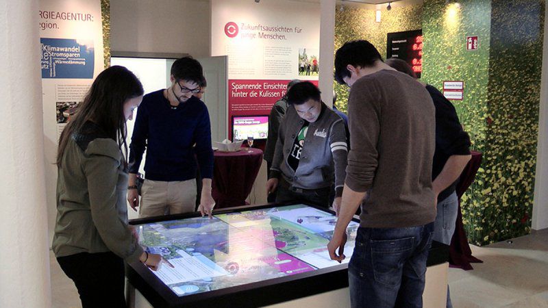 The interactive 3D animations, visuals and info menus present complex knowledge in a simple, vivid and playful way. Several people can operate the multitouch table simultaneously. Thus, the digital showroom invites people to meet and exchange ideas together..