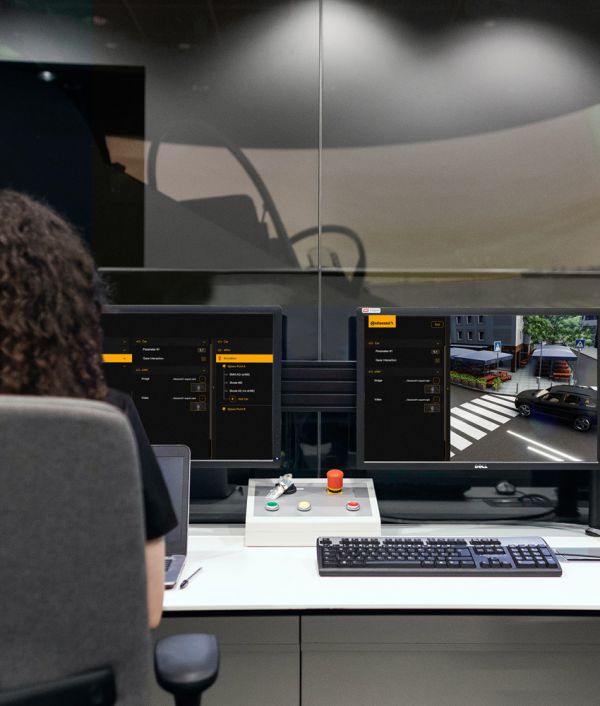 The operator configures a traffic situation in which pedestrians must move in traffic and interact with autonomous vehicles.