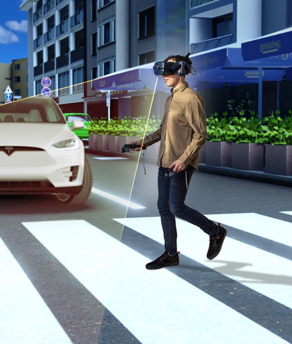 Test subjects are placed in a virtual world that replicates a real street and feels so real that authentic pedestrian behavior can be simulated.