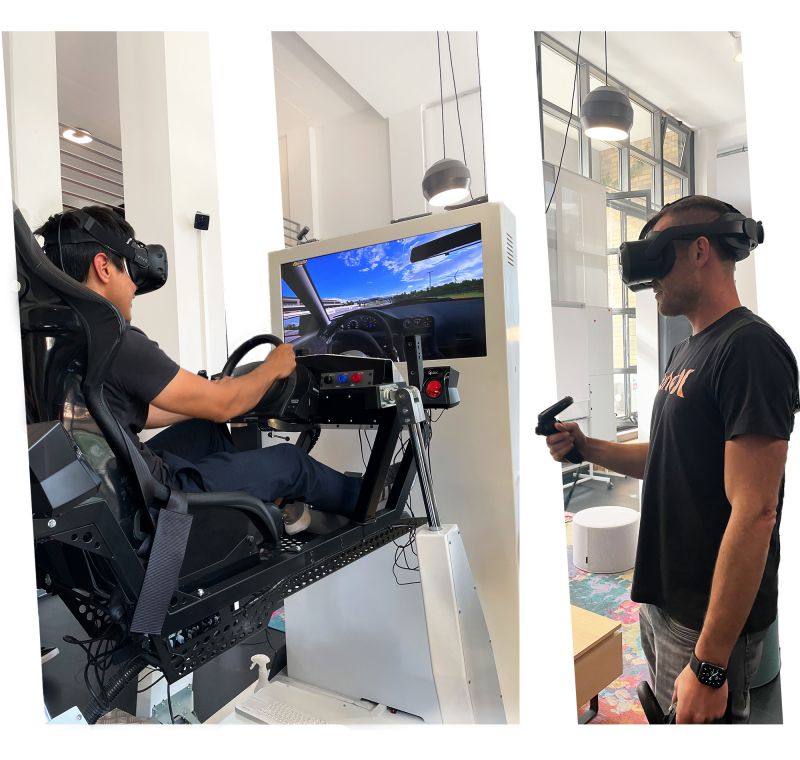 Mit Spaß lernt es sich besser: Beim XR Exploration Day erleben Teams spannende Unterhaltung, zum Beispiel mit unserem vollhydraulischen Motion Simulator für immersive Autorennen oder wilde Achterbahnfahrten.