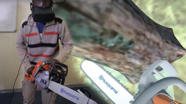 This type of training also has the advantage that various training scenarios can be set up completely independently of location. Whether on a construction site, in a forestry operation or in an industrial plant, trainers and trainees can meet in a networked and remote environment. And this saves costs: For the virtual lessons, production processes are neither interrupted, nor machines blocked. Expensive materials don’t have to be used. And the danger of injury is practically non-existent in VR.