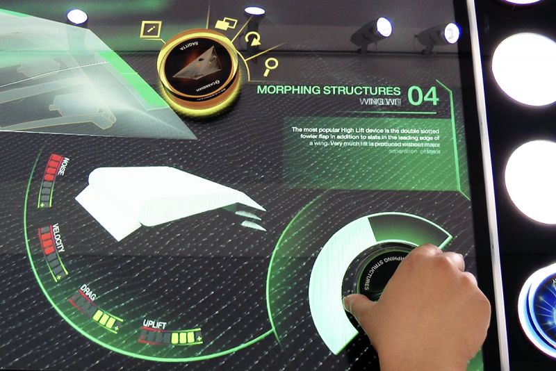 Um Messebesuchern einen intuitiven und spielerischen Zugang zur Welt der Luftfahrtforschung zu bieten, wurde für den Technology & Innovation Stand der EADS ein Messekonzept mit einer interaktiven Touch-Anwendung umgesetzt. Es macht Messebesucher zu experimentierfreudigen Forschern.