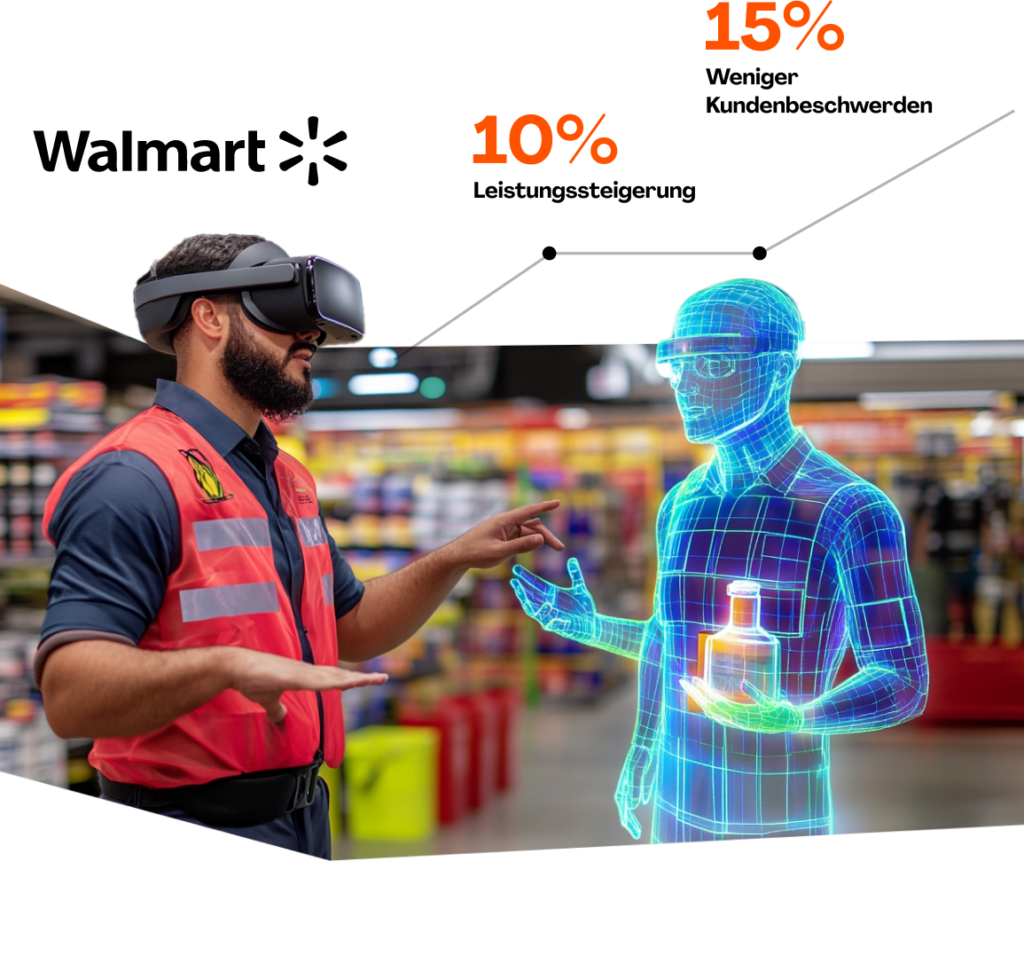 Walmart hat über 17.000 VR-Headsets eingesetzt und über 1 Million Mitarbeiter geschult, wodurch die Ausbildungszeit um 96 % verkürzt und die Kundenbeschwerden um 15 % gesenkt wurden. Besonders bei Notfällen und komplexen Aufgaben bietet VR praxisnahe, effiziente Schulungen, die Mitarbeiter schneller auf neue Prozesse vorbereiten und die Gesamteffizienz sowie Zufriedenheit steigern.