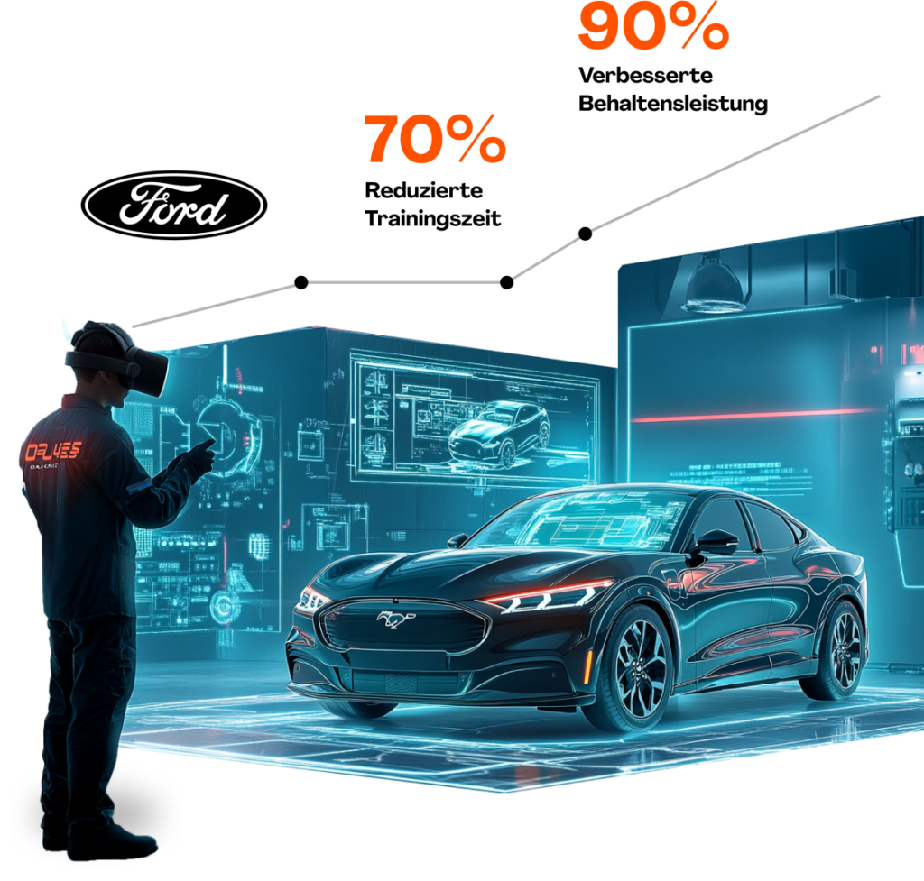 Ford und Bosch haben eine VR-Trainingslösung entwickelt, mit der Techniker Wartungsprozesse des Mustang Mach-E mittels Oculus Quest erlernen können. Dies spart Zeit und ermöglicht flexibles Lernen. Erste Tests begannen 2019, und Ford plant die Ausweitung auf weitere Modelle. Die Ausbildungszeit konnte durch VR um 70 % verkürzt und die Mitarbeiterbindung um 90 % gesteigert werden.